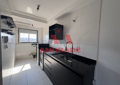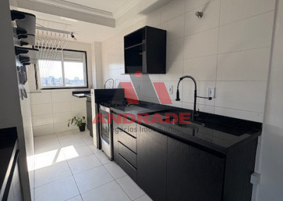 Imóvel com móveis na cozinha e no banheiro , um guarda roupa, piso laminado e lindas luminárias . Prédio com portaria, elevador, mine mercado.