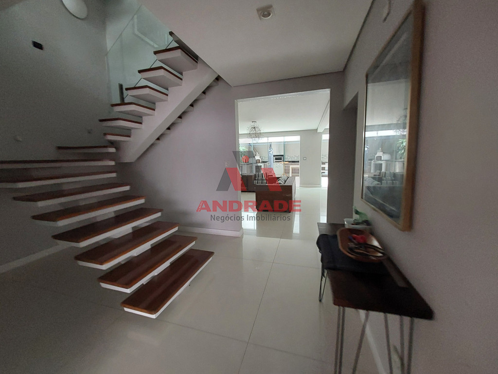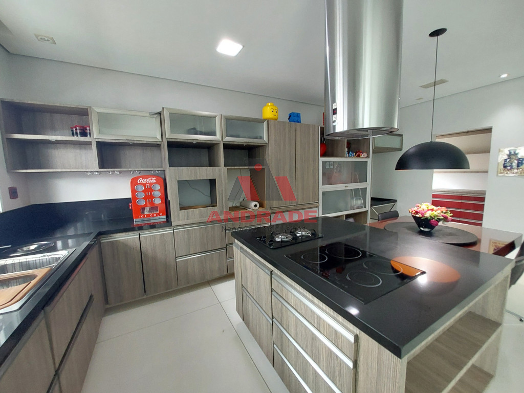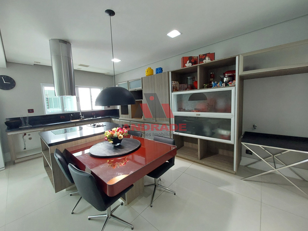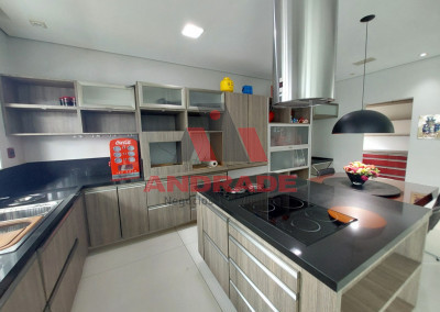 1º Andar: Cozinha com Ilha e Sala de Jantar integrada, Sala de TV e Sala de estar integradas e Lavabo