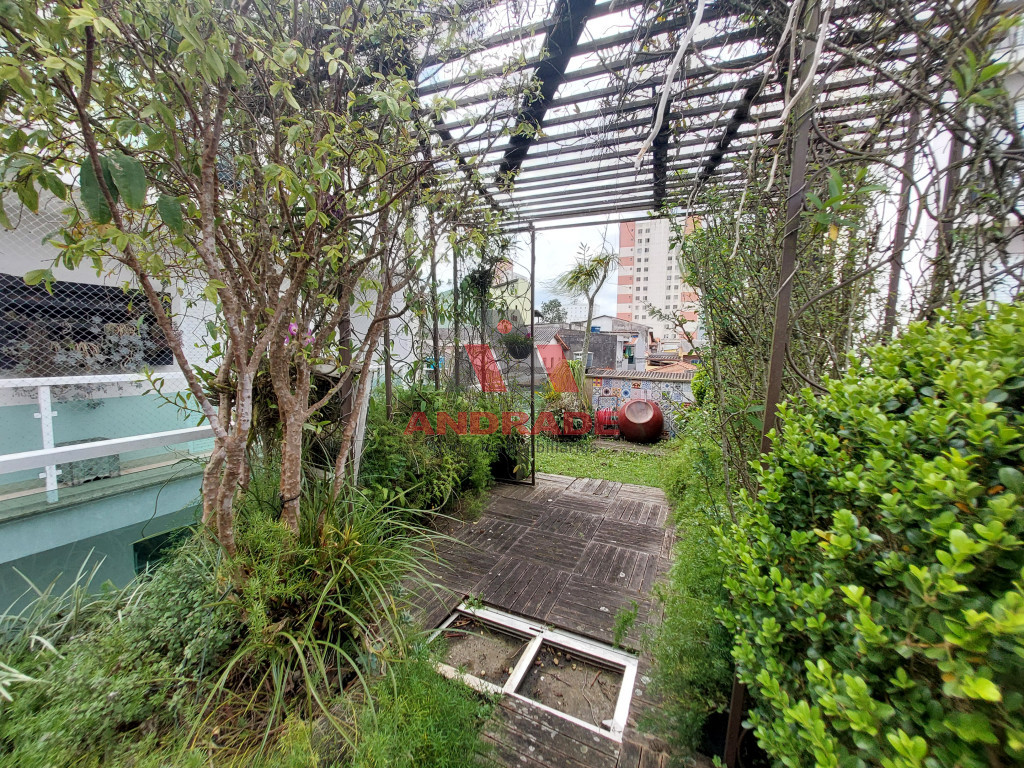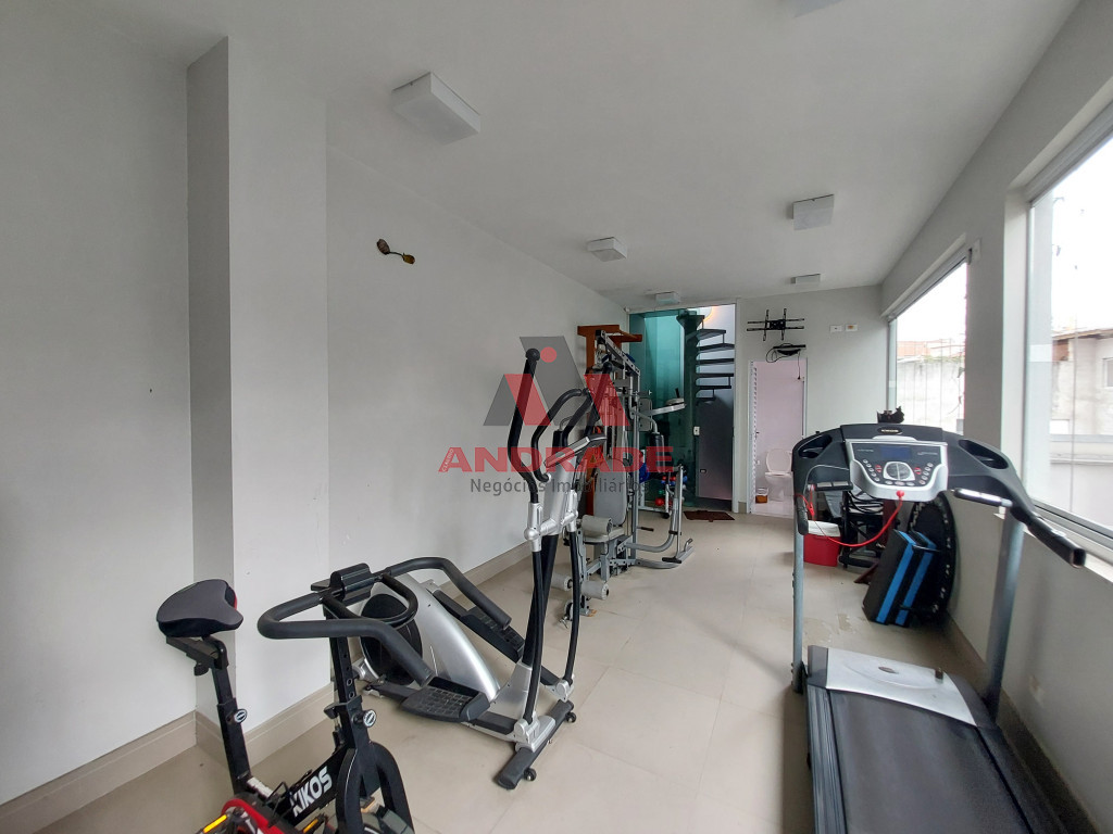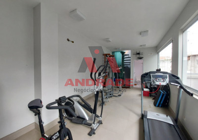 Academia no pavimento do 1º andar sobre a área de churrasqueira e Jardim no terraço sobre a Academia