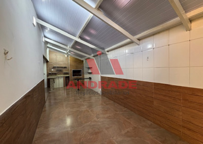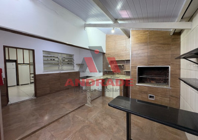 Grande área de churrasqueira, móveis planejados na cozinha e um dormitório, quintal, portão automático.