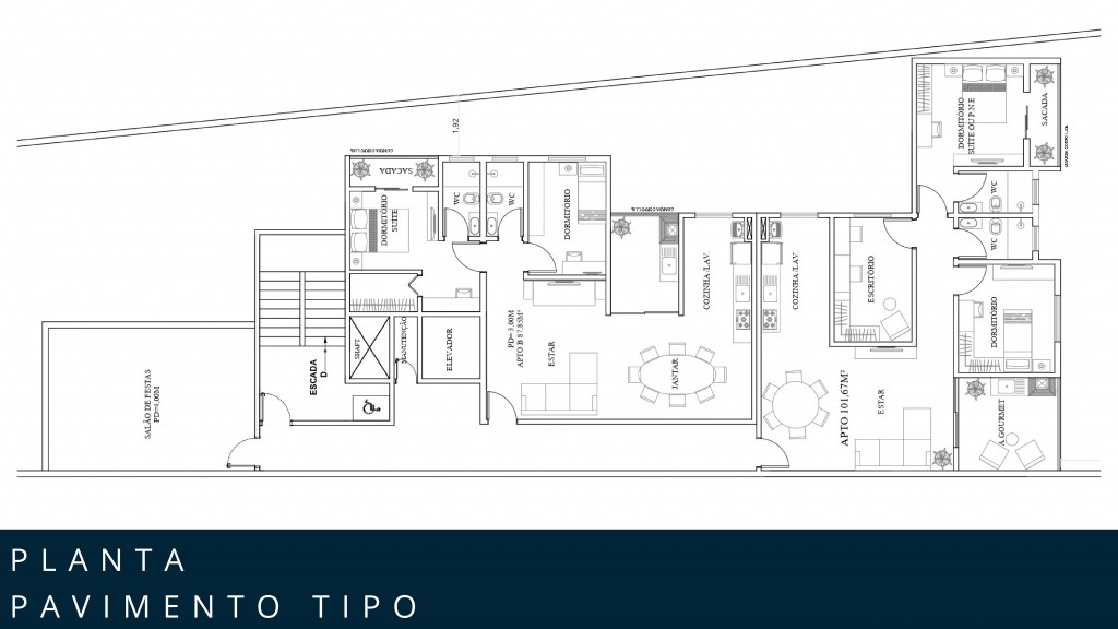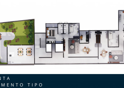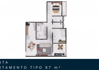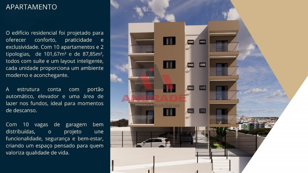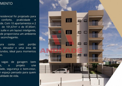 Unidades com 87,85me e 101,67m2 com 02 dormitórios sendo uma suíte com sacada, sala de estar com varanda gourmet , cozinha integrada, 01 escritório, 01 banheiro social, área de serviço, 01 vaga de garagem .
