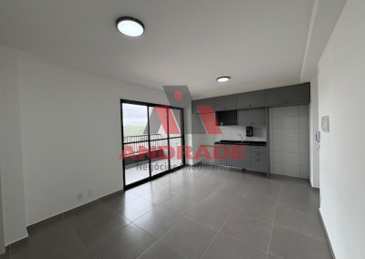 Cozinha planejada, piso em porcelanato na sala, laminado nos dormitórios.